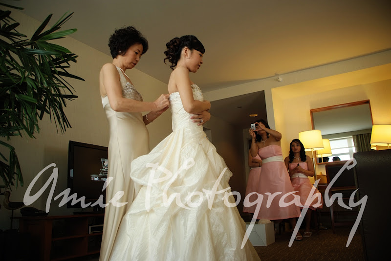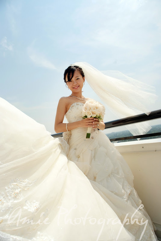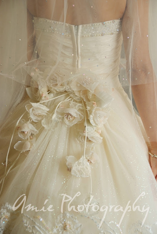 The bride’s rhinestone-decorated veil also came from Korea, as well as her silk flower bouquet that could easily pass as real.
